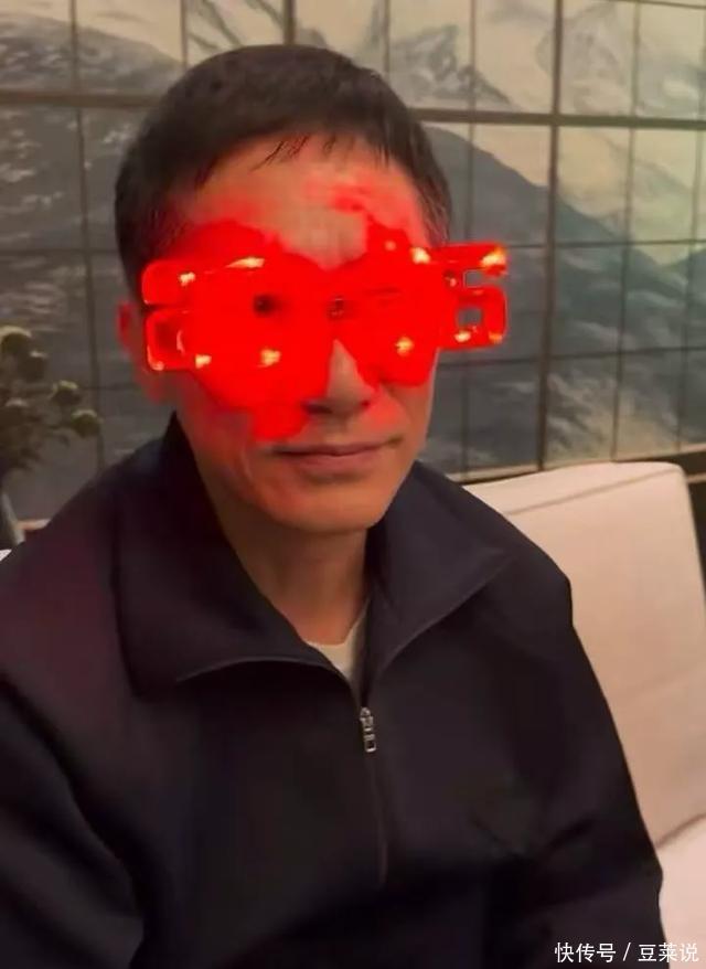 还戴了一个会发光的,以2026年为主题的红色玩具眼镜,这一幕引得大家哈哈大笑,可能是大家起哄让他戴的